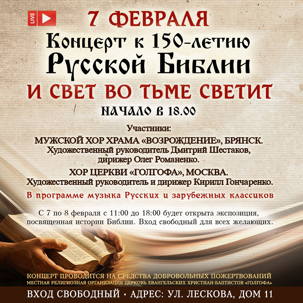 7 января (среда) - Утреннее Рождественское Богослужение в 11:00